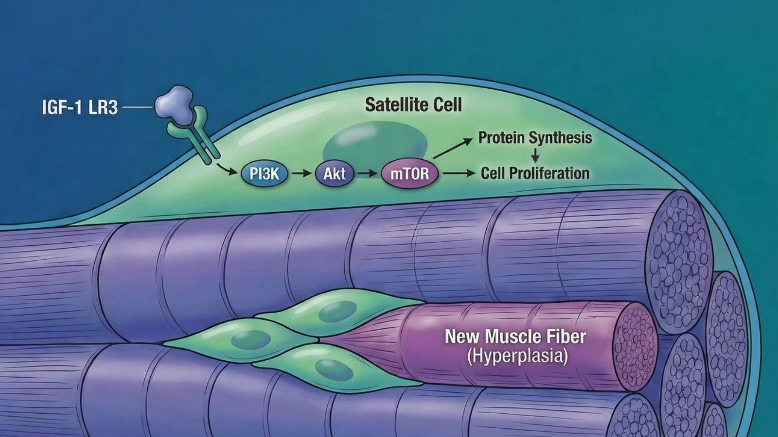 Unlike most supplements and even anabolic steroids that simply make your existing muscle fibers bigger, IGF-1 LR3 works at the stem cell level. It activates satellite cells and can help create entirely new muscle fibers through hyperplasia.